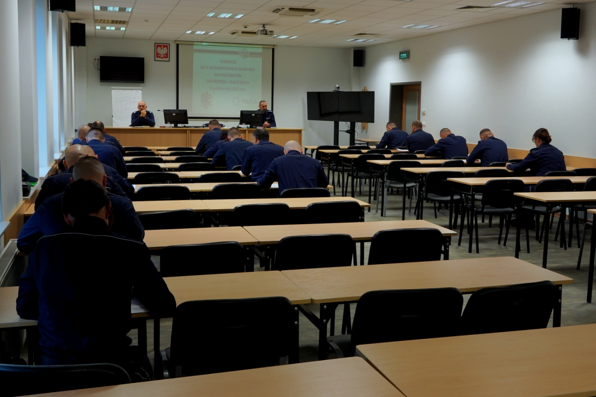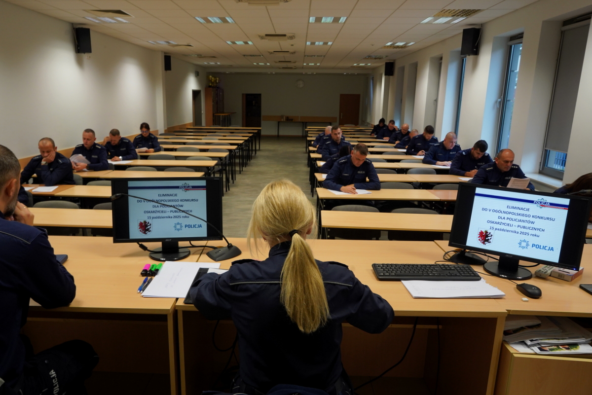 W salach wykładowych na terenie Komendy Wojewódzkiej Policji w Bydgoszczy policjanci-oskarżyciele publiczni zostali poddani ocenie w dwóch konkurencjach: