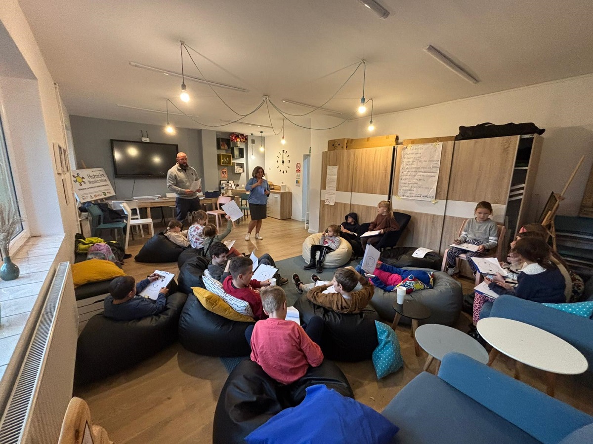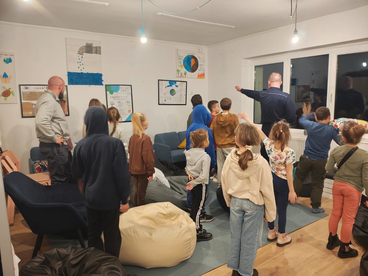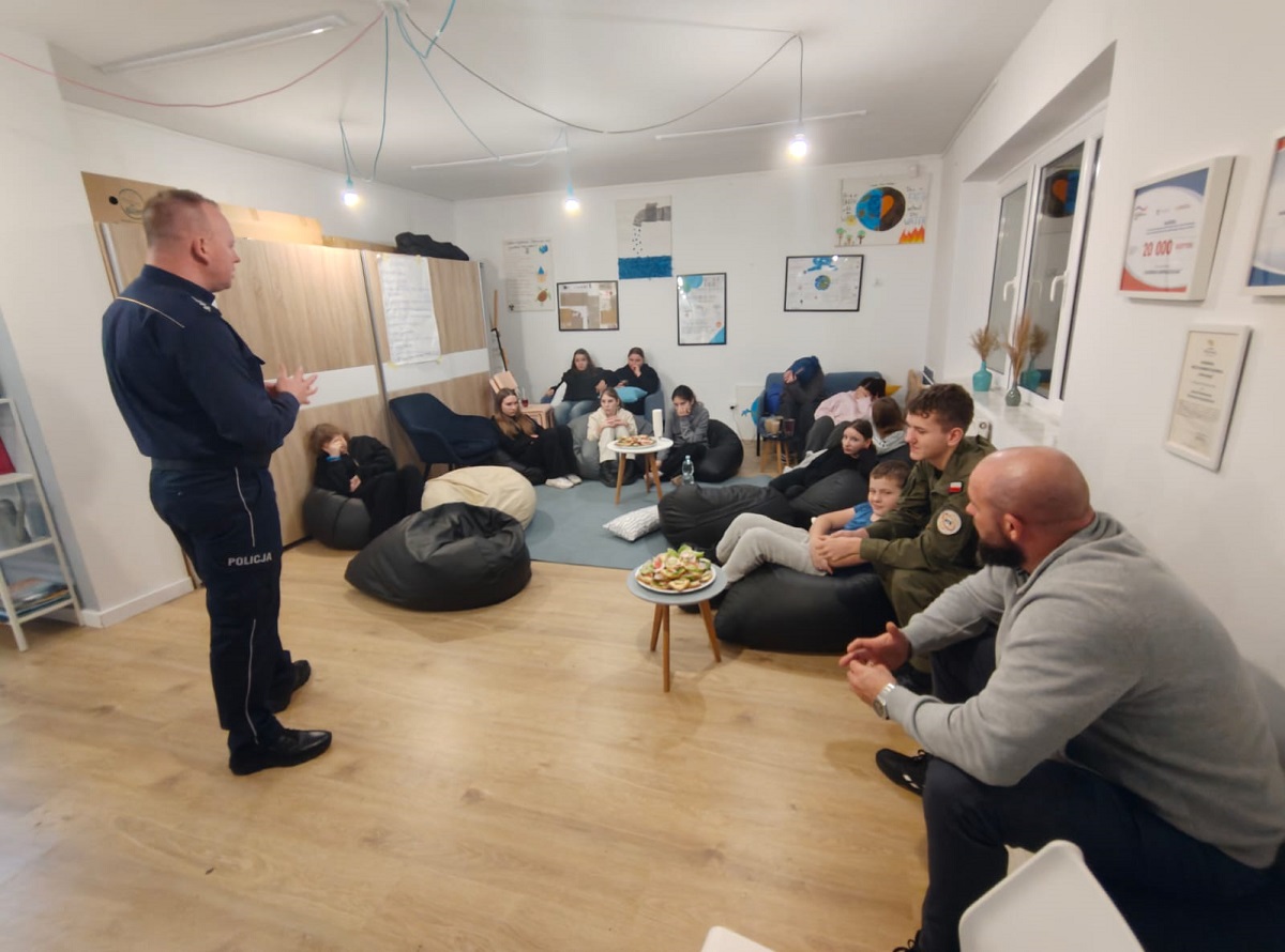 Starszy aspirant Krzysztof Świerczyński na zaproszenie PCUS, w siedzibie Stowarzyszenia Młodych Gminy Płużnica przeprowadził pogadanki z dziećmi i młodzieżą na temat szeroko rozumianej przemocy.
