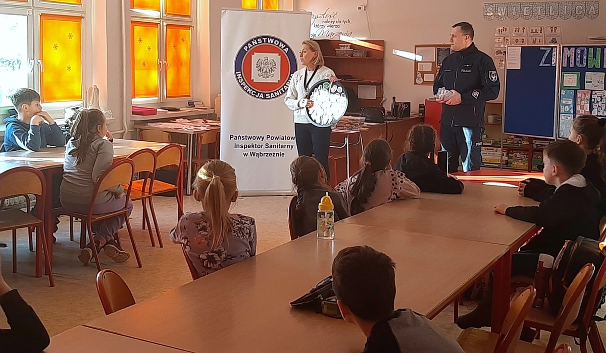 W miniony wtorek oraz środę funkcjonariusz naszej jednostki, starszy aspirant Krzysztof Świerczyński wraz pracownikami Powiatowej Stacji Sanitarno - Epidemiologicznej z Wąbrzeźna przeprowadził pogadanki dla uczestników zimowych półkolonii organizowanych przez szkoły podstawowe w Wąbrzeźnie. Dzięki zajęciom z Paniami z Sanepidu najmłodsi mogli poznać i przypomnieć sobie podstawowe zasady bezpieczeństwa z zakresu higieny, zdrowego odżywiania się i aktywnego trybu życia.