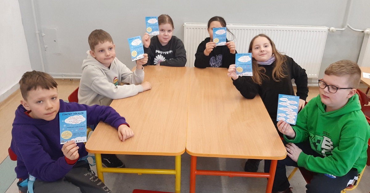 Dzieci otrzymały również ulotki i plakaty promujące akcję "Kręci mnie bezpieczeństwo w zimie" zachęcające również do wzięcia udziału w konkursie plastycznym.