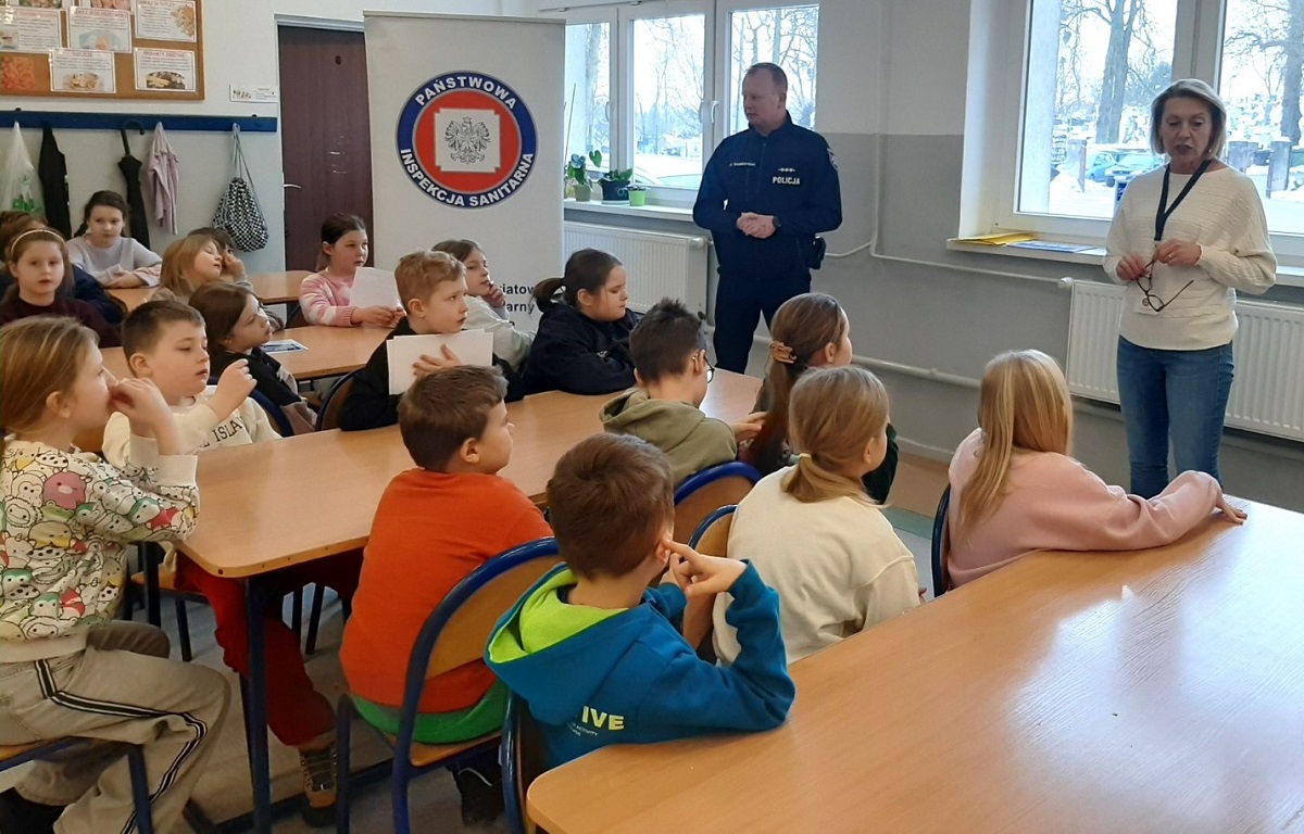 Uczniowie Szkół Podstawowych numer 2 i 3 z Wąbrzeźna, spędzają ferie zimowe bardzo aktywnie. Poza zajęciami i warsztatami przygotowanymi przez szkoły, dzieci miały okazję spotkać się z policjantem i pracownikami Inspekcji Sanitarnej.