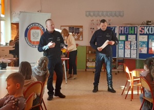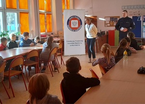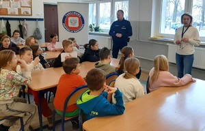 Nasz policjant przeprowadził pogadanki na temat szeroko rozumianego bezpieczeństwa podczas ferii zimowych. Przypomniał o obowiązku korzystania z elementów odblaskowych, bezpiecznych zabawach z dala od dróg czy ostrożności podczas korzystania z Internetu.