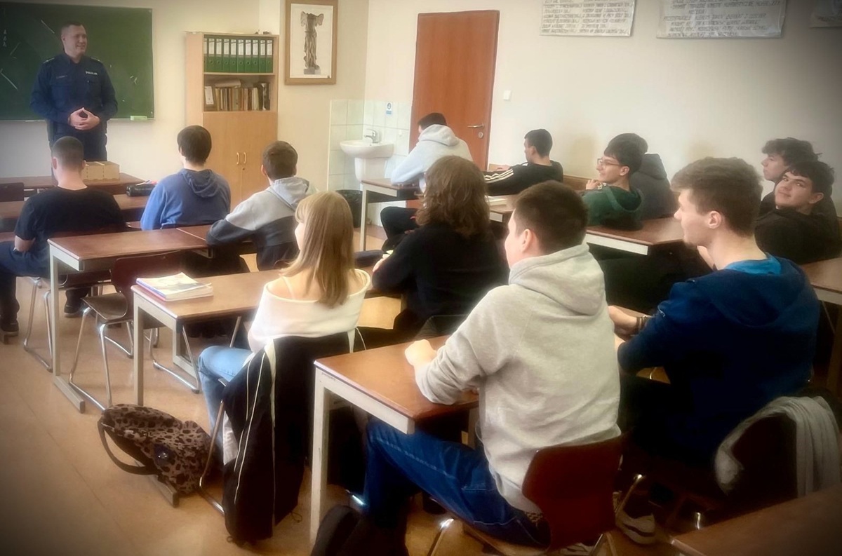 Profilaktyka nie jedno ma imię. Nasi funkcjonariusze stawiają na kontakt bezpośredni i osobisty przekaz w małych, kameralnych grupach, aby jak najskuteczniej dotrzeć do świadomości młodych ludzi, którzy powoli wkraczają w dorosłe życie.