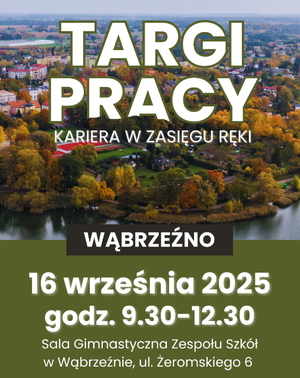 Już w najbliższy wtorek (16 września 2025 roku) od godziny 9:30 w Wąbrzeźnie przy ul. Żeromskiego 6, odbędzie się kolejna już edycja Targów Pracy. Na miejscu będziemy również my.